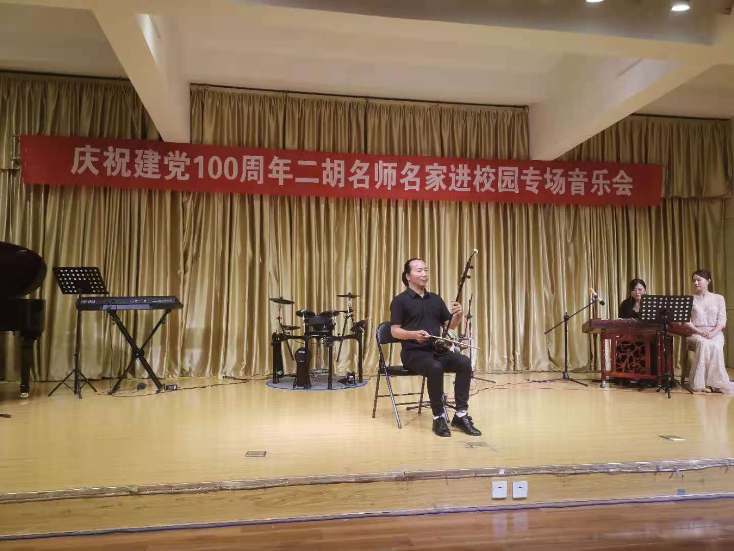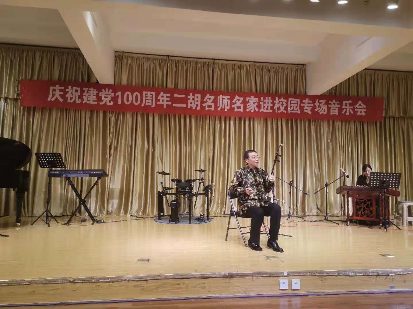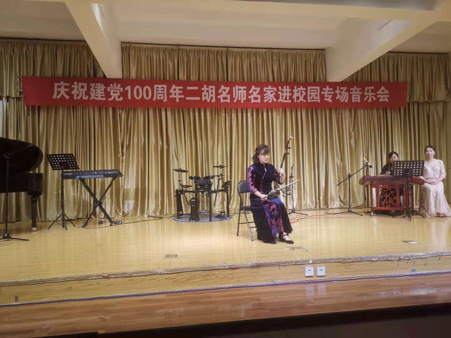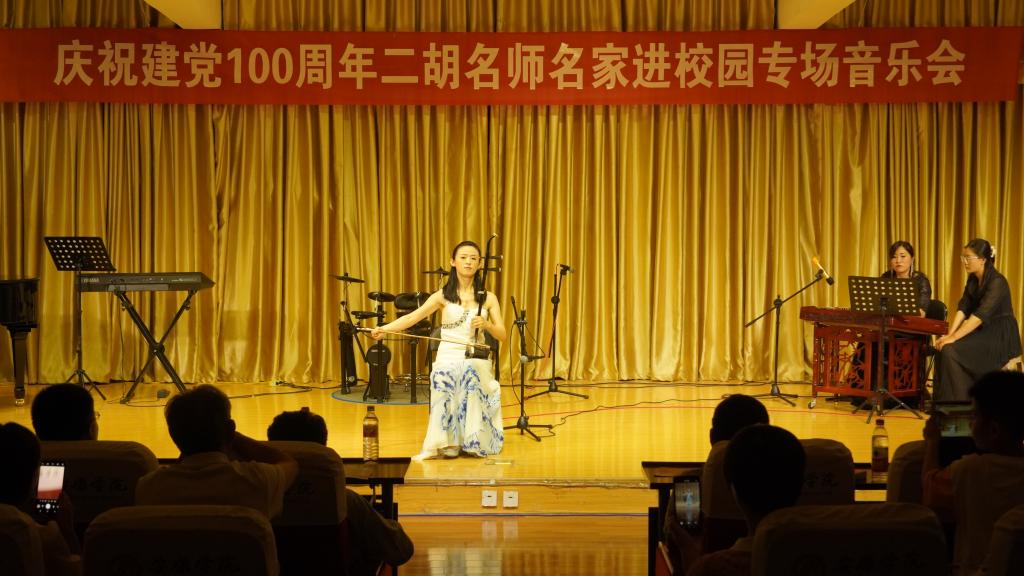 6月10日晚,由陕西民族管弦乐学会二胡专业委员会和今年会官网今年会jinnianhuicom联合主办的“庆祝中国共产党成立100周年暨秦派二胡名师名家进校园今年会官网专场音乐会”在今年会官网江北校区1401演艺厅成功举办,今年会官网师生200余人聆听了音乐会。