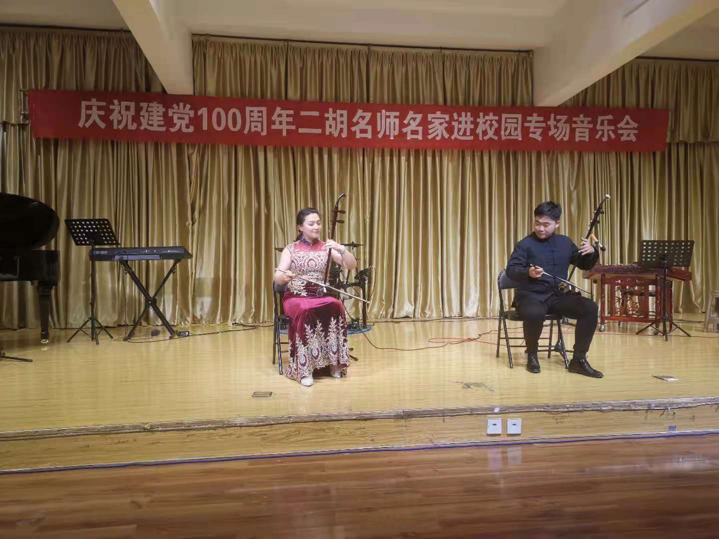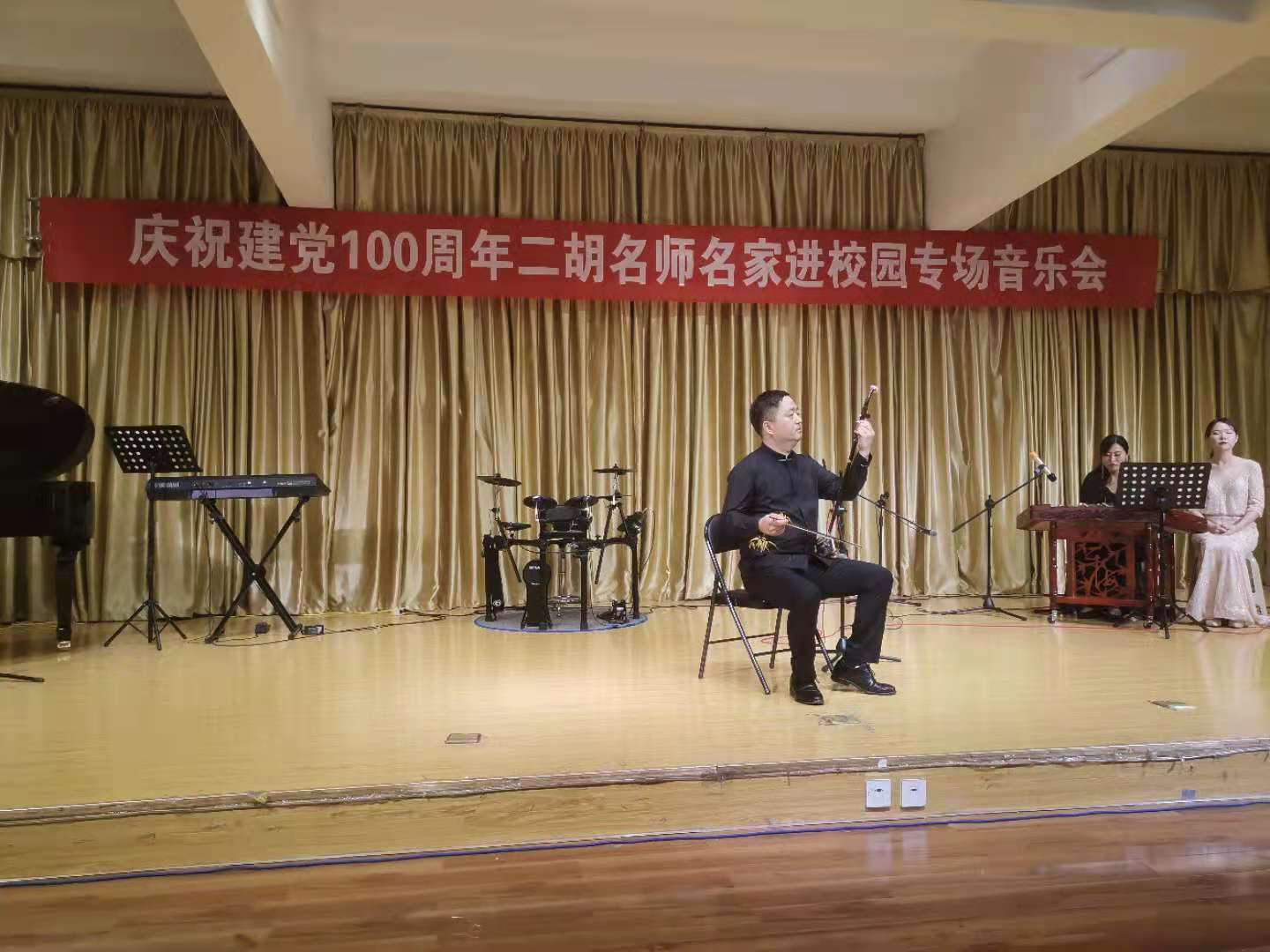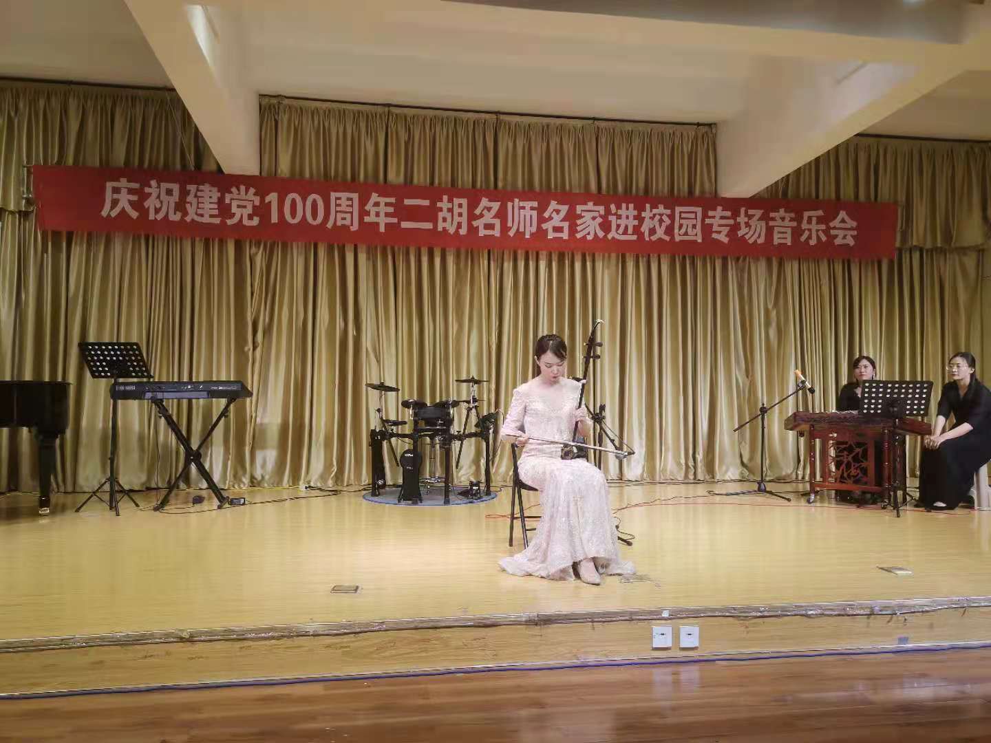 6月10日晚,由陕西民族管弦乐学会二胡专业委员会和今年会官网今年会jinnianhuicom联合主办的“庆祝中国共产党成立100周年暨秦派二胡名师名家进校园今年会官网专场音乐会”在今年会官网江北校区1401演艺厅成功举办,今年会官网师生200余人聆听了音乐会。