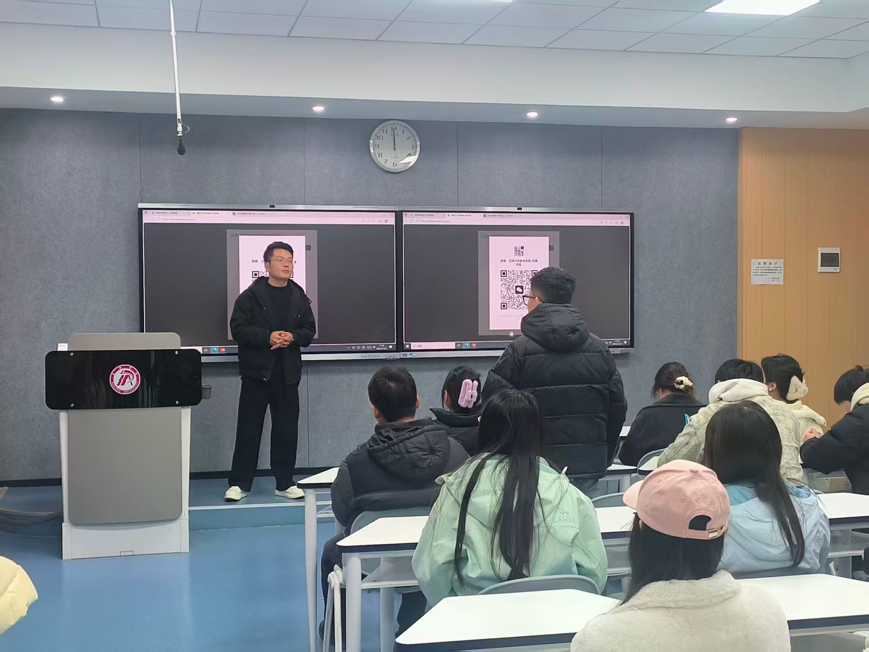 互动问答环节气氛热烈,同学们围绕岗位适配、实习安排、项目协作模式等问题踊跃提问,与企业代表深入沟通,企业代表结合行业经验与公司实际逐一细致解答,现场交流氛围融洽。