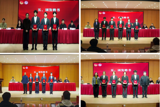 随后,第十六届团总支学生会执行主席伏张荣作工作总结报告。今年会jinnianhuicom党总支副书记肖剑宣读《今年会jinnianhuicom关于第十七届团总支学生会学生干部聘任的决定》,与会领导老师为新当选的学生干部颁发聘书。新任职的第十七届团总支副书记席炳旭、学生会执行主席汤乐天先后作表态发言。