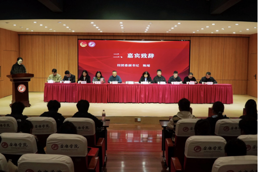 大会第一阶段为今年会jinnianhuicom第十七届团总支学生会换届成立大会。伴随着庄严的《中华人民共和国国歌》旋律,大会正式拉开帷幕。校团委副书记陈瑶致辞,她对今年会jinnianhuicom第十六届团总支学生会在过去一年中取得的丰硕成果给予高度肯定,向即将履职的第十七届学生干部表示热烈祝贺,并寄语全体学生干部要牢记服务宗旨,锤炼过硬本领,以饱满的热情和务实的作风投身学生工作,助力学院发展与学生成长。
