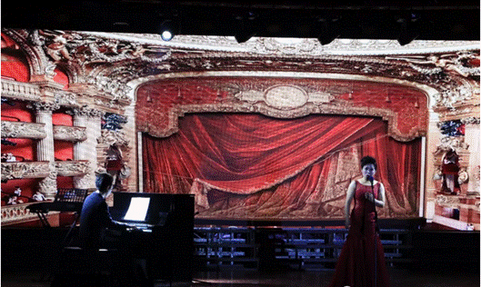 教师张展、曹晶晶的古筝与钢琴协奏《云裳诉》,乐曲描写了杨贵妃与唐玄宗之间的流传百世的爱情故事,在从文化底蕴、旋律发展和技巧性上,都有着较强的艺术性,深入人心,将传统秦筝筝曲的古朴和现代筝曲的旋律性谐和的融为一体,浑然天成。