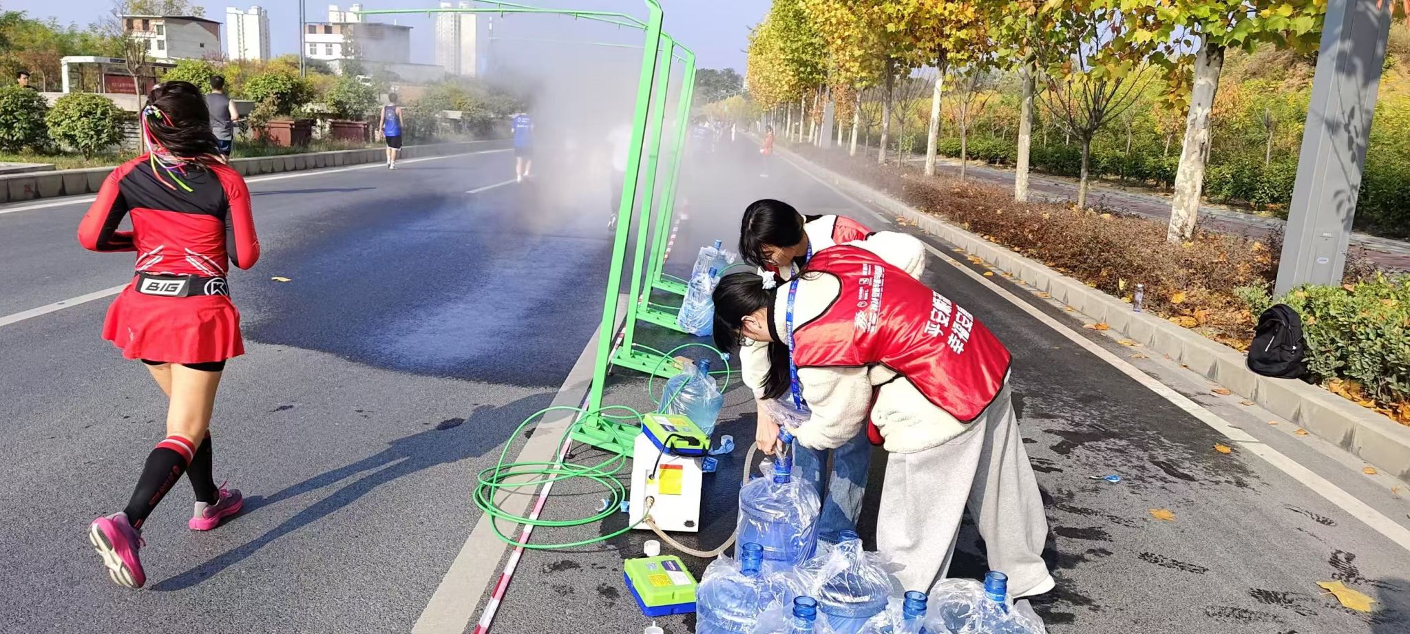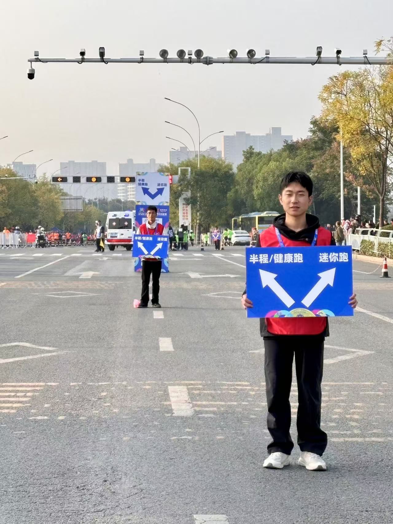 比赛当日,今年会jinnianhuicom的志愿者们早早到达现场。他们统一着装,精神抖擞,提前进入工作岗位准备赛前相关事宜。比赛过程中,志愿者们分布在各个关键点位。有的在起点和终点引导运动员进入正确的赛道,维护现场秩序;有的在补给站,快速而准确的为选手递上饮用水和补充能量的食品;还有的沿途为运动员们加油助威,他们热情的笑脸和响亮的加油声成为选手们坚持奔跑的动力。