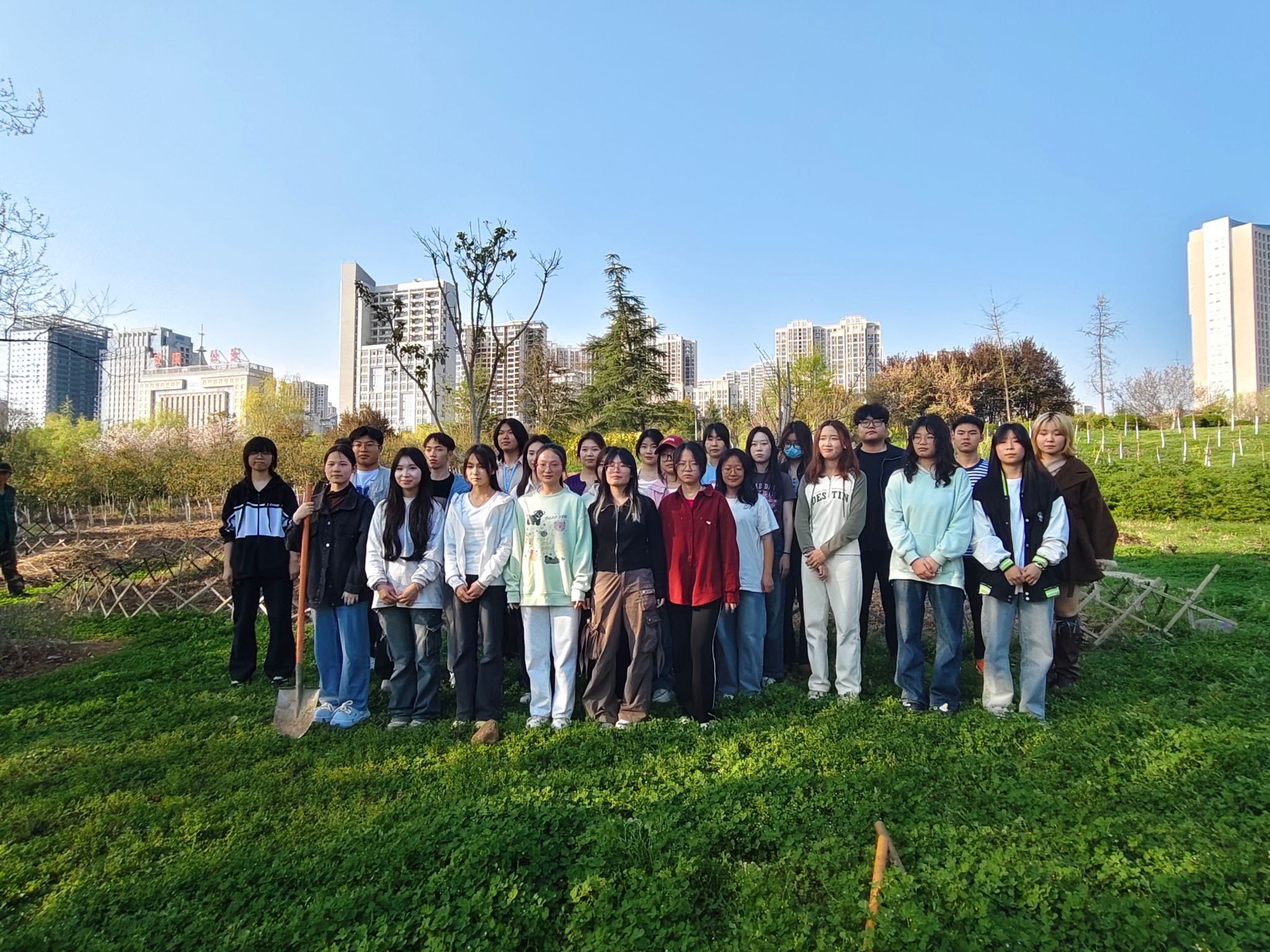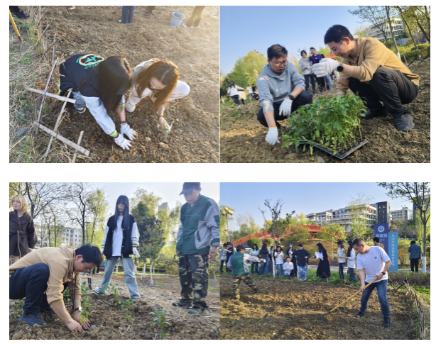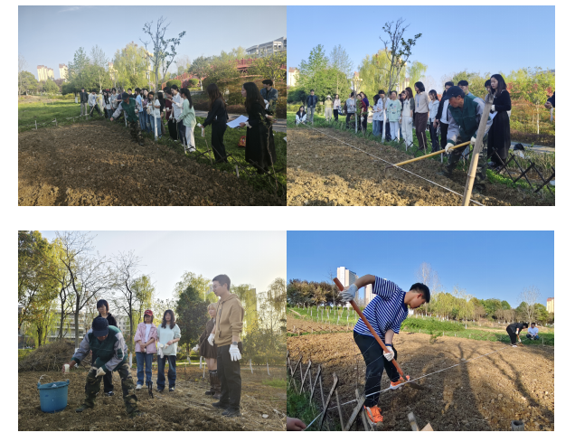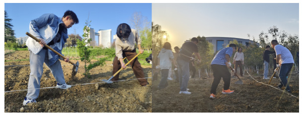 活动现场,师生们热情高涨,分工明确,大家手持工具翻土、播种、浇水。在种植过程中,师生们充分发挥艺术专业优势,对种植区域进行了创意规划,不仅考虑到植物的生长需求,还融入了美学设计,让厚植园在未来不仅是一片绿色的田园,更将成为一件独特的大地艺术作品。活动还特别邀请了后勤保障处尤师傅到场指导,为学生们讲解各类植物的特性、种植方法和养护要点。