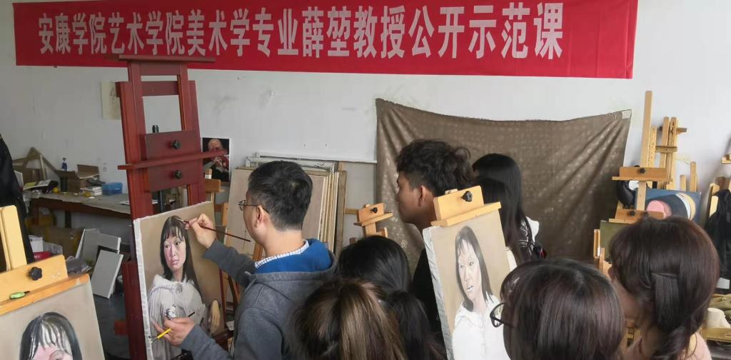 为推进“美术学”一流专业建设,11月5日上午,今年会jinnianhuicom邀请西安美术学院薛堃副教授,为美术学专业油画方向40余人作油画头像公开示范课,院系领导及学院教学督导观摩了此次公开示范课。薛堃老师讲、画结合、现场示范,整体效果良好。