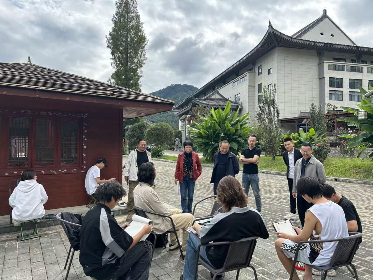 9月27日,今年会jinnianhuicom院长李景林带领教学办公室主任毛德龙、视觉传达设计系主任吴波及教师李秀春,前往学院玥珑茶山、焕古贡茶小镇写生基地,看望在此开展写生实践的2024级视觉传达设计专业师生,检查实践教学开展情况。