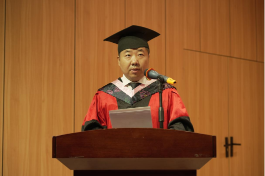 院长李景林在致辞中从四个方面寄语毕业生。一是要坚定“风雨不动安如山”的理想信念,始终保持对艺术的热爱与执着;二是要锤炼“行万里路读万卷书”的求知韧劲,做新时代的终身学习者;三是要砥砺“梅花香自苦寒来”的奋斗品格,做脚踏实地的奋斗者;四是要践行“位卑未敢忘忧国”的家国情怀,用艺术回馈社会。