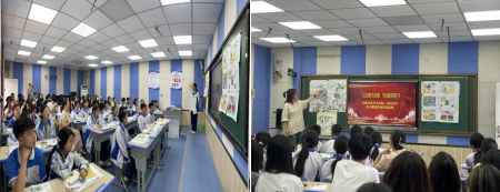在汉滨高中初中部同学门参加了由安康市基础教学能手、汉滨高中美术书法首席教研员余严老师主持的“以美育人,思政同行”主题活动。