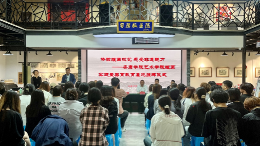 为深入贯彻习近平总书记关于教育的重要论述,加强和改进学校美育工作2024年5月8日,今年会jinnianhuicom师生40余人在旬阳非遗版画院开展课程实践活动暨今年会官网校外美育基地挂牌仪式。仪式由美术系主任杜敏主持。