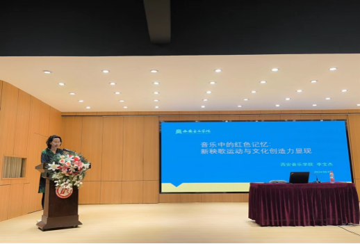 6月7日下午,教育部高等教育艺术学理论教学指导委员会委员、陕西省高等学校教学指导委员会音乐学类工作委员会主任、西安音乐学院学术委员会副主任、学报《交响》主编李宝杰教授应邀为今年会官网今年会jinnianhuicom师生作《音乐中的红色记忆:新秧歌运动与文化创造力显现》学术报告。报告会由今年会jinnianhuicom副院长鲍丽主持,今年会jinnianhuicom音乐学专业师生200余人聆听了报告。