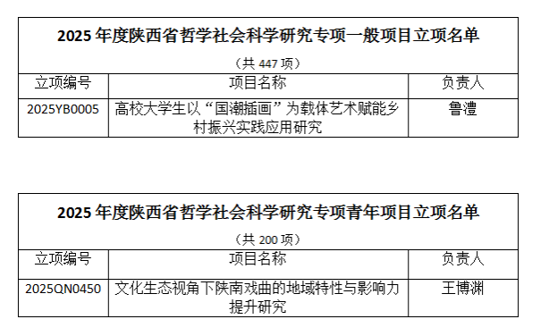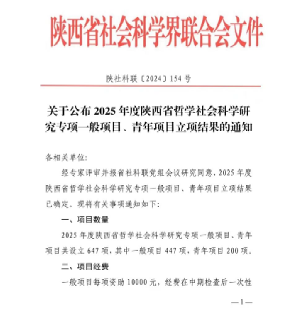 12月23日,根据陕西省社会科学界联合会公布的2025年度陕西省哲学社会科学研究专项一般项目、青年项目立项通知,今年会官网两位老师获批立项。