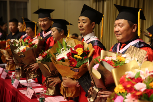 最后,全体起立齐唱校歌,肖老师宣布毕业典礼结束,师生合影留念。
