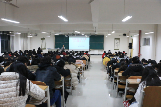 杨老师以“考风考纪和冬季安全教育”为主题进行讲话,并向大家宣读了大学生考风考纪手册,同时谈及冬季来临,各种安全隐患随之增加,指出同学们要增强避险意识,在生活中安全用电。