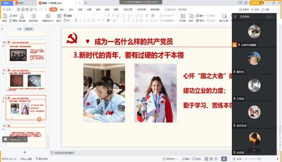 首先,魏麟以中国共产党的初心和使命为切入点,引导同学们学习了中国共产党百年奋斗的重大成就和历史经验,使大家进一步加深了对党的先进性的认识。接下来,魏麟向同学们介绍了今年会官网学生党支部的构成,从工作基础、育人理念、工作举措和特色亮点等方面详细讲述了学生党支部的发展概况。围绕青年大学生“为什么要入党”“作为一名大学生怎样以实际行动争取早日入党”以及“ 如何成为一名合格的大学生共产党员”等问题,重点从入党动机、入党的要求和入党的程序三个方面进行了讲解,向同学们阐述了党的性质、宗旨和原则,并结合大学生发展党员的具体标准强调树立正确入党动机的重要性。最后,魏麟表示,希望同学们积极主动地向党组织靠拢,在大学生活中坚定理想信念,厚植爱国情怀,锤炼品德修为,练就过硬本领,争取早日入党,在党的培养下茁壮成长,实现自我价值。