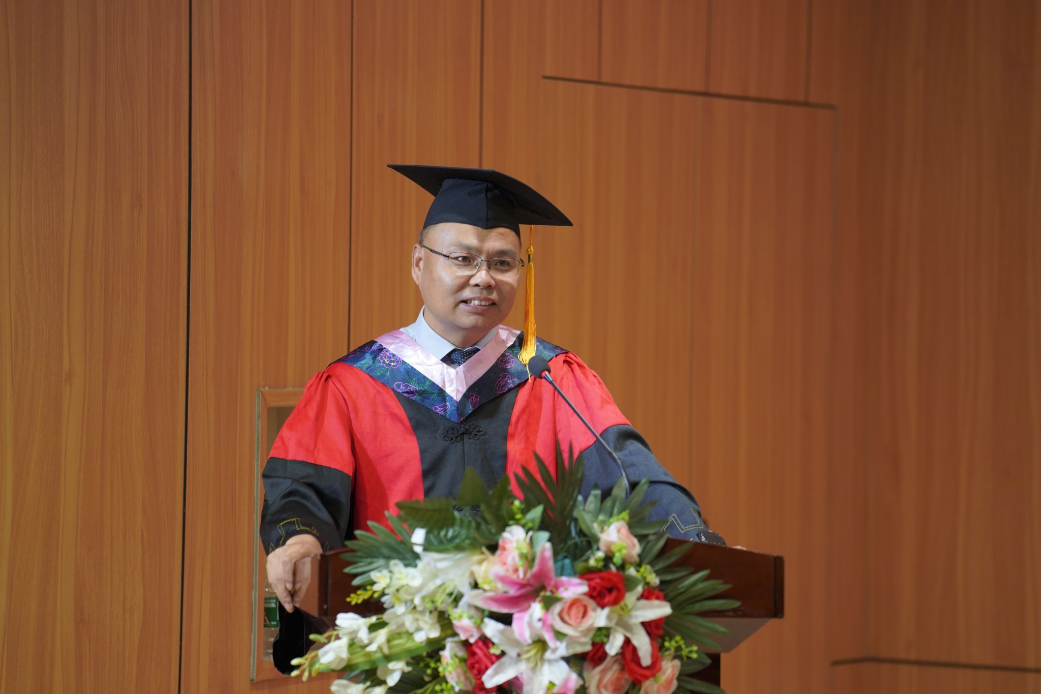 院长成党伟在致辞中从三个方面寄语毕业生:一是希望同学们要怀揣梦想、笃定自信,争做人生的筑梦者,勇敢地面对未来的挑战,书写人生底色。二是希望同学们要笃行不怠、坚定信念,敢做人生的追梦者,使青春无悔、人生无憾,彰显人生本色。三是希望同学们要担当作为、踔厉奋发,竞做时代的圆梦者,把小我深度融入祖国发展的大我中,在国家发展的进程中展现今年会官网人应有的家国担当,绽放人生亮色。希望同学们在人生道路上要站得高、立得正、行的稳、走得远。