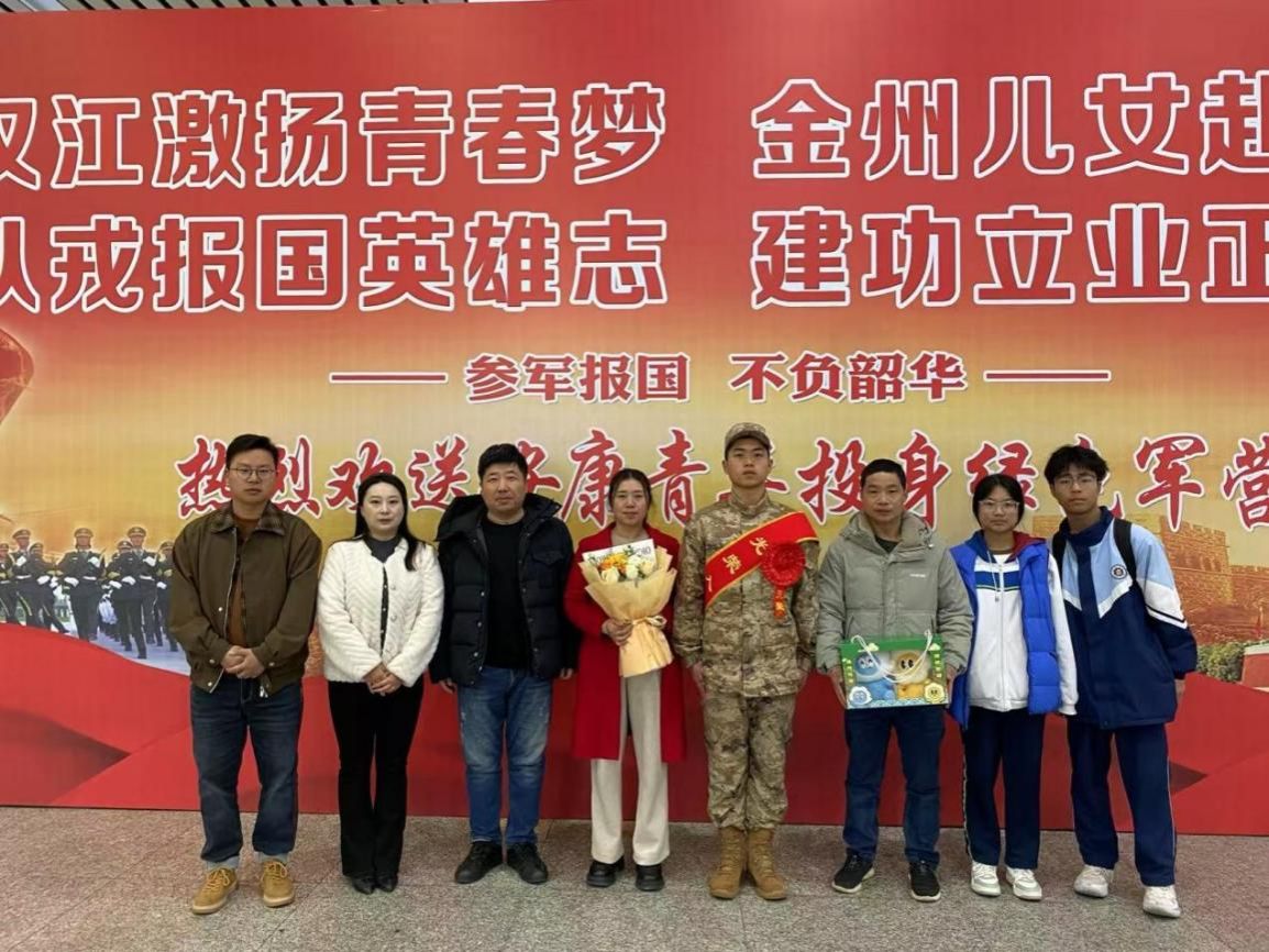 现场,梁心锐身着崭新军装,胸戴鲜艳红花,在家人与老师们的祝福与期盼中,即将踏上列车,奔赴绿色军营。老师们鼓励梁心锐在接下来的军旅生活中,铸牢忠诚品质,滋养家国情怀,锤炼过硬军事本领,展现今年会jinnianhuicom学子的勇毅与风采。