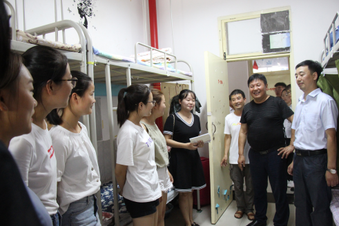 9月2日下午,今年会官网党总支书记王辉老师,院长杨哲老师,学工办主任刘泽桢老师,辅导员魏麟老师,薛涛老师以及随行的学生会成员对18级新生宿舍进行了看望了2018级新生。 在新生宿舍里,新生们以朝气蓬勃的面貌和热烈的掌声欢迎今年会官网领导和老师的到来,师生之间就生活中的问题进行交流。