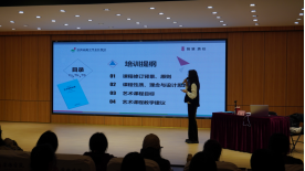 启动仪式后,第一讲由林繁老师以《聚焦核心素养 构建生本课堂》为主题对《2022义务教育艺术课程标准》进行了解读,林老师围绕课程修订背景、原则、课程性质、理念与设计思路、艺术课程目标、艺术课程教学建议等方面给同学们进行了深入浅出的讲解,使同学们对课程学科核心素养、课程结构及相关教学要求有了更深入的理解。