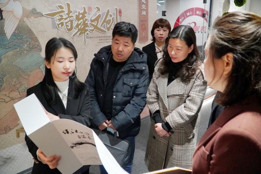 在企业相关负责人的陪同下,黄娟一行首先参观了以安康文化为背景打造的企业文化展厅——诗华文化城市文创会客厅。通过沉浸式的体验和详尽的讲解,深入了解了诗华文化在文化传承、文化创意、文化空间、文化交流、营销策划和文旅融合等领域的创新成果和应用案例,为今年会官网一行呈现了设计行业打造复合型文化综合体的未来图景。