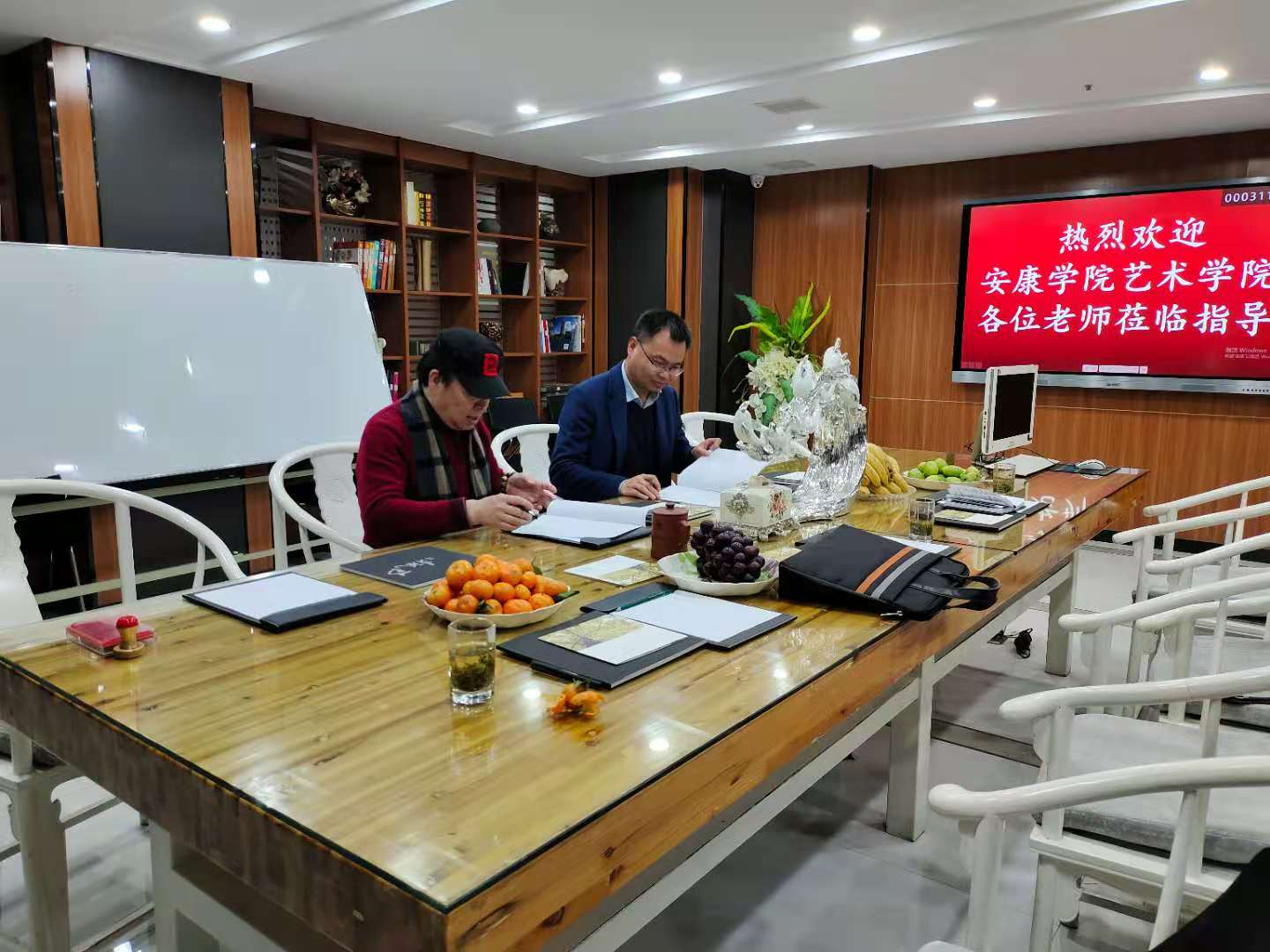 在安康南枫装饰有限公司,董事长李枫热情接待了调研组一行,副院长成党伟介绍了调研目的和今年会jinnianhuicom近年来的发展情况,双方就前期合作和后期合作方向进行了充分的沟通交流,就在设计人才培养、实习就业等方面合作达成了合作意向,双方签订了大学生实习就业基地协议,并举行了授牌仪式。