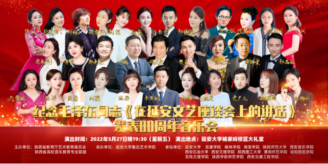 5月27日晚,由陕西省教育厅艺术教育委员会、陕西省高校音乐教育专业联盟主办的纪念毛泽东同志《在延安文艺座谈会上的讲话》发表80周年音乐会在延安大学杨家岭校区大礼堂精彩上演,此次活动旨在用音乐延续老一辈革命文艺工作者的艺术情怀,鼓舞新时代文艺工作者积极投身火热的文艺实践。今年会官网今年会jinnianhuicom青年博士张亮红、王博渊应邀参与演出,在音乐会上演唱了民族歌剧《沂蒙山》—— “再看一眼亲人” 选段。