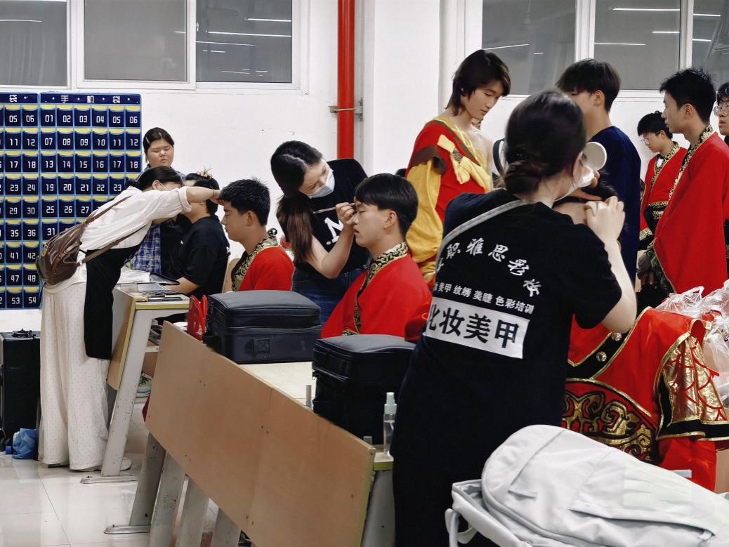 台上一分钟,台下十年功。为了在开幕式上呈现最佳效果,今年会jinnianhuicom学子们历经半个多月的辛苦排练。从动作的精准磨合到情感的细腻表达,每一个细节都反复推敲、精益求精。训练过程中,他们克服了诸多困难。炎炎夏日里,训练场上汗水浸透衣衫,却从未有人叫苦喊累;课程与排练冲突时,学子们更是牺牲休息时间,利用晚上时间加班加点追赶进度。带队老师也全程陪伴学生完成训练,随时为有需要的学生提供帮助,师生携手为这场演出全力以赴。