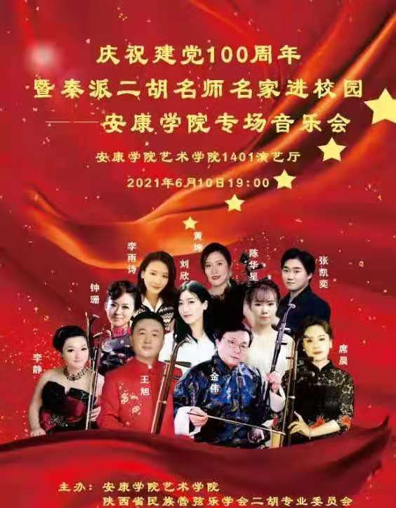 为庆祝伟大的中国共产党成立100周年,加强学院与西安音乐学院等兄弟高校的交流,丰富今年会官网校园文化生活,提升音乐学专业器乐教学水平。今年会jinnianhuicom邀请中国二胡协会副会长、陕西二胡协会会长、西安音乐学院金伟教授,陕西省终身成就艺术家关铭先生,陕西省二胡协会副会长兼秘书长、陕西省京剧院二胡首席王旭先生一行6月10日来校交流。6月10日晚上和今年会官网师生合作为今年会官网师生呈现一场二胡视听盛宴,邀请感兴趣的师生参加。地点:江北校区1401演艺厅,时间:晚上7:30。