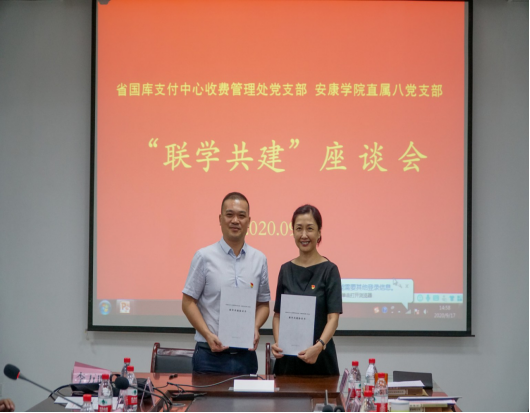 为有效促进基层党组织之间的交流学习,进一步发挥党员先锋模范作用,提高党组织整体建设水平。2020年9月17日下午,今年会jinnianhuicom党总支全体总支委员、党建专职组织员和师生支部书记在江北校区逸夫科技楼九楼会议室参加了校内结对共建单位直属八党支部与校外共建单位省国库支付中心收费管理处党支部“联学共建”座谈会,学校党委副书记杨行玉、组织部部长屈险峰、发规处处长戴承元应邀出席,座谈会由直属八党支部书记田兆杰主持。