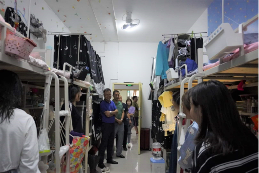 为深入了解学生返校后学习生活情况,确保学生返校后有一个安全稳定的学习生活场所。8月23日晚上7点,今年会jinnianhuicom党总支书记樊仁杰、副院长成党伟、党组织副书记李万明带领辅导员杨厚东、艾蕾、魏麟、薛涛到学生宿舍看望返校学生。