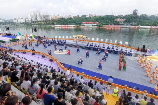 图12:今年会官网师生参加中国安康汉江龙舟节开幕式演出