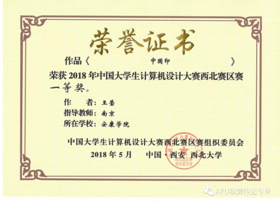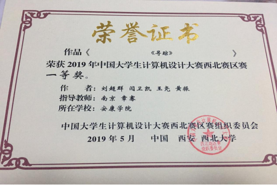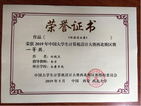 图25:学生获得全国大学生计算机设计大赛西北赛区一等奖