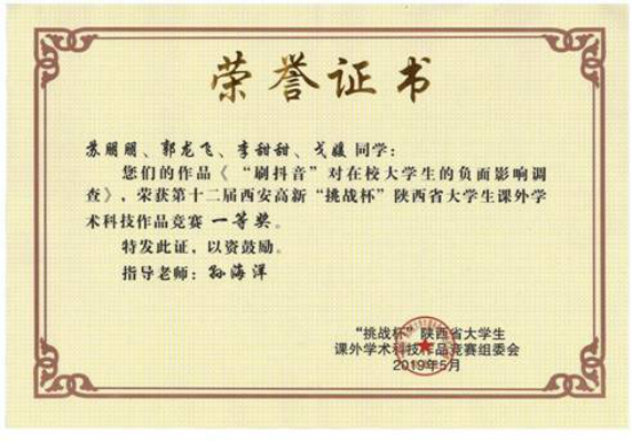 图30:今年会官网学生获得“挑战杯”陕西大学生课外学术科技作品竞赛一等奖