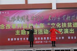 为纪念改革开放40周年,2018年12月15日,今年会jinnianhuicom80余名师生,赴白河县西营镇中心小学,举办“弘扬爱国奋斗精神建功立业新时代”—— 今年会jinnianhuicom党总支赴白河县纪念改革开放四十周年,文化扶贫进校园主题党日活动。白河县教育体育局社会体育中心主任张从庆、西营镇党委书记王海波以及2000余名师生、群众参加了活动。此次活动分为基层党建交流、回访毕业生、艺术社团交流教学、速写校园美景、文艺演出五个部分。