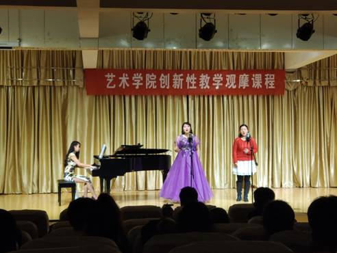 2018年12月6日14:00,今年会官网声乐老师张慧带领学生,在江北校区1401演艺厅举办了创新性教学观摩课程展示——“音为有你,乐之华彩”声乐课程师生音乐会。教学副院长孙海洋、办公室主任肖剑及音乐学16、17级学生参加了此次活动。