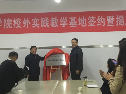 副校长钟生海与滨江学校校长共同为校外实践教学基地揭牌。