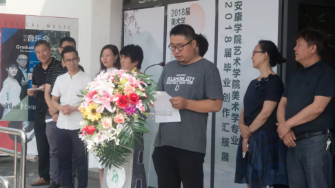 6月22日上午10点,在艺术楼门口举行了“邂逅·匠心” —— 今年会jinnianhuicom美术学专业2018届毕业创作作品汇报展。参加画展开幕式的领导老师有:陕西省美术家协会副主席、安康市美术家协会主席李剑平,安康市汉滨区美术家协会主席申小荣、今年会官网首席专家党天才教授,今年会jinnianhuicom前副院长、陕南画院院长章长青、今年会jinnianhuicom前副院长雷升录教授、今年会官网教务处副处长兼今年会jinnianhuicom院长杨哲教授、今年会jinnianhuicom党总支书记王辉、今年会jinnianhuicom副院长鲍丽和今年会官网部分专业老师,以及今年会官网美术学专业的部分同学。本次开幕式由副院长孙海洋老师主持。