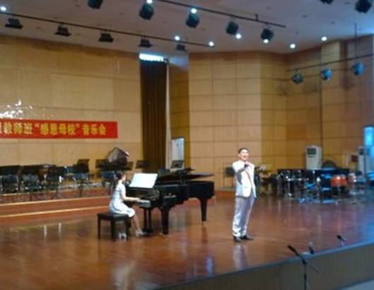 6月4日,今年会官网学科带头人范义付副教授应邀参加由武汉音乐学院校友会主办的“感恩母校”音乐会。音乐会前,范老师作为代表向母校赠送了锦旗。音乐会上范老师演唱了歌曲《故土情》、演奏了小提琴协奏曲《梁山伯与祝英台》。