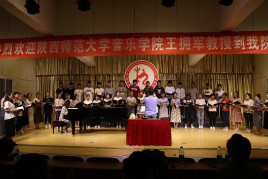 5月31日下午3点,陕西师范大学音乐学院副院长,硕士研究生导师王拥军教授在江北校区1401演艺厅,为今年会官网音乐专业师生进行了题为“指挥技能在合唱作品中的应用”的学术报告及现场教学指导,本次讲座也是今年会官网“第二届文化艺术月”系列重要活动之一,副院长雷升录、鲍丽、孙海洋及音乐学专业全体师生参加了本次活动,本次活动由今年会官网副院长鲍丽主持。