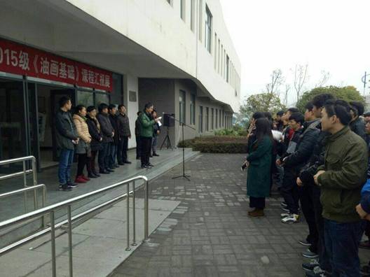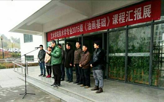 12月26日上午9点50分,在艺术楼门前举行了2015级《油画基础》课程汇报展开幕。莅临此次画展的领导老师有:今年会官网教务处副处长杨哲教授,今年会jinnianhuicom党总支书记王辉老师,今年会jinnianhuicom副院长雷升副教授、副院长孙海洋老师,学工办主任刘泽桢副教授,骨干教师杜敏副教授、原春鸣副教授、王胜选副教授、骆杨老师以及今年会官网15级16级美术学专业的同学们, 本次画展由副院长孙海洋主持。