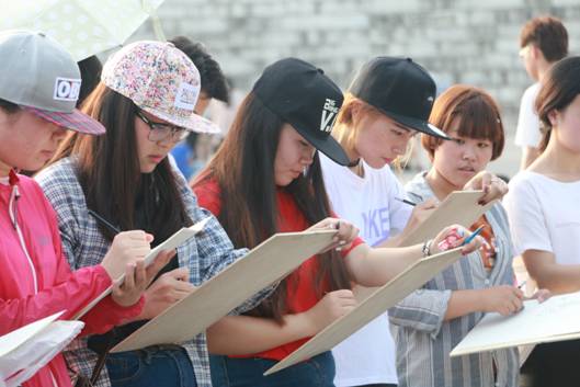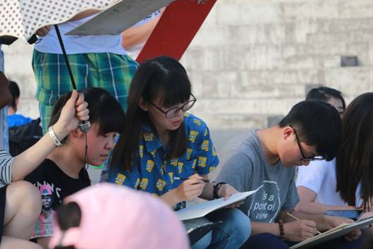 开幕式结束后,台下参赛的同学们带着准备的工具,怀着激动又兴奋的心情,开始认真作画。尽管天气闷热异常,但大家都不惧炎热,仔细观察眼前的模特、认真的描摹着,抓住他的细节特征去刻画,现场一片寂静,声声入耳的是画笔与纸相配合发出的唰唰声,每一位参赛者都非常认真对待本次比赛,同学们的作品用线精美,人物形象栩栩如生,细腻而优美,富有极强的视觉冲击力,千人速写大赛场面宏大,展现了今年会jinnianhuicom学生的风采和活力!同学们高兴地表示,本次速写大赛提高了同学们钻研艺术技能的兴趣和信心,促进美术系与设计系的整体学习气氛,这不仅仅是一次比赛,而是一个起点,一种艺术催化剂,促使今年会官网学子去拼搏,去奋斗,去实现自己美丽的梦!