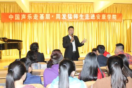 10月10日上午10点,中国海政文工团安康籍著名男高音歌唱家周发猛先生携其学生在我系演艺厅,与我系音乐专业师生进行了声乐演唱交流活动,并结合自己的教学经验,对我系学生进行了现场教学指导。
