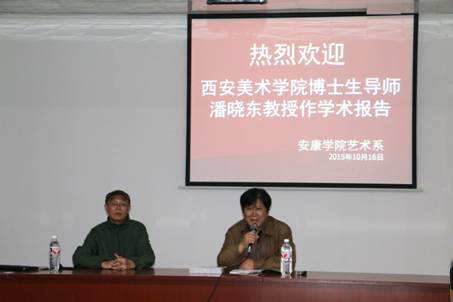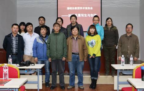 10月16日,西安美术学院博士生导师潘晓东教授,在我系校外实践教学基地——洛南县华阳写生基地学术报告厅,为我系视觉传达设计专业2014级学生做了“油画风景写生与创作”的专题报告,报告中潘晓东教授简述了油画的发展历史、重点分析了风景写生中对不同天气光线的把握、色彩风景写生的观察、写生的方法与步骤,最后结合自己的油画作品和大家共同分享了自己的创作经验,讲解写生与创作的关系。潘教授的报告深入浅出,精彩纷呈,同学们收益匪浅。这次学术报告也是我系首次将校外实践教学与学术交流活动相结合的一次尝试。对于进一步完善实践教学环节,提升教学效果有着良好的实际意义,为以后的写生采风实践教学提供了良好的借鉴。