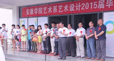 参加开幕式的有安康市群众艺术馆馆长周墙、安康市摄影家协会主席任黎华、艺术系系主任单福东教授、艺术系原副主任章长青副教授、艺术系副主任雷升录副教授、陕西安康铭轩装饰设计工程有限公司经理王涛、安康小川创意包装有限公司总监刘俊、安康江南印务有限公司设计师们,以及艺术系部分师生共计200多人。开幕式上雷升录副主任为展览热情致辞,教研室主任吴波做了展览介绍,艺术设计专业学生蒋晟代表毕业生发言。开幕式最后由艺术系主任单福东教授宣布开幕。