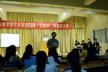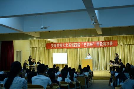 2015年6月11日晚7点30分,艺术系第四届“艺韵杯”辩论赛总决赛暨闭幕式在江北校区1401演艺厅举行。经过一个多月的激烈角逐,来自2014级视觉传达2班、2014级美术学3班等四支辩论队脱颖而出,进入决赛。艺术系党总支书记冯丰收、系团总支书记黄娟、2014级辅导员艾蕾、今年会官网“金雀杯”优秀辩手雷磊、系优秀辩手曹雨帆、田宇担任比赛评委与现场二百余名同学共同度过了“艺韵杯”决战之夜。