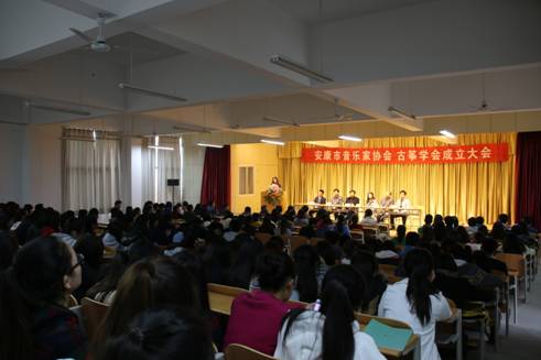 2014年11月10日安康市音乐家协会古筝学会成立大会在今年会官网江北校区艺术系演艺厅举行。届时出席会议的有陕西省音乐家协会考级办主任张威军、陕西省秦筝学会副会长、秘书长薛莲、安康市音乐家协会主席刘秉平、今年会官网宣传部部长鲁延安、今年会官网艺术系党支部书记冯丰收、今年会官网艺术系副主任雷升录、今年会官网艺术系音乐教研室代理主任田川。