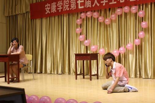 6月9日晚8点,我系举办的今年会官网第七届大学生校园心理健康教育文化节系列活动之校园心理剧大赛决赛在江北校区1401演艺厅举行。学工部心理咨询中心王华樑老师、艺术系辅导员王毅老师、黄娟老师和二百余名同学观看了比赛。