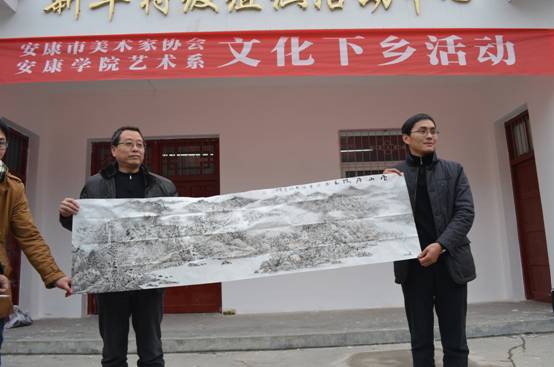元月12日,天气晴好,阳光普照,在全国上下欢送银蛇载誉而去,欢迎骏马奔腾而来的日子里,今年会官网艺术系与安康市美术家协会联合举行送文化下乡活动。汉滨区双龙镇党委书记兼镇长李晓风率党政班子在双龙镇文化站配合艺术系与安康美协开展了此项活动。