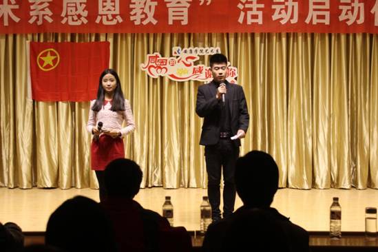 按照校团委《关于在2013级新生中开展“感恩存心,感谢有你”感恩教育系列活动的通知》精神,我系团总支进行精心组织准备,将本次感恩教育活动与我系“艺术人生引领工程”紧密结合,制定了周密的实施方案,并于11月17日晚7点30分在江北校区1401教室举行了艺术系“感恩存心、感谢有你”感恩教育活动启动仪式。系党总支书记冯丰收、系学工办主任刘泽桢、系学生党支部书记王毅、系团总支书记黄娟、音乐学专业教师伦晓虎以及系团总支、学生会学生干部、2013级全体班团干部、各班学生代表共200余人参加的启动仪式。2013级音乐学专业学生姚东、苏佳宁主持了启动仪式。