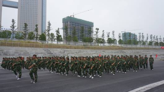 军训中,同学们在教官和指导员王毅老师的带领下,战高温,斗酷暑,刻苦训练,磨练意志,团结奋斗,力争优秀。
