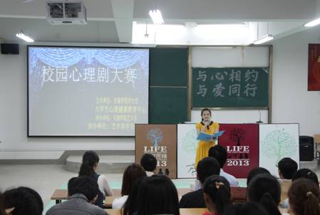 比赛现场,9支队伍围绕“人际交往、亲子关系、宿舍关系、恋爱关系”等方面为剧本内容,采用多种形式展现了自己的参赛作品,演出时而幽默惹全场哄堂大笑,时而感人让全场唏嘘一片,气氛热烈活跃,让同学们在轻松愉快、幽默诙谐中,感悟成长历程,思考解决困惑的途径。